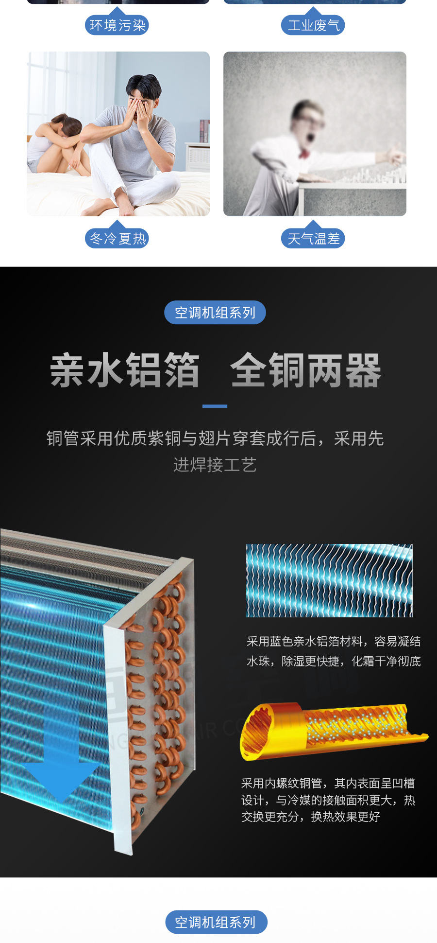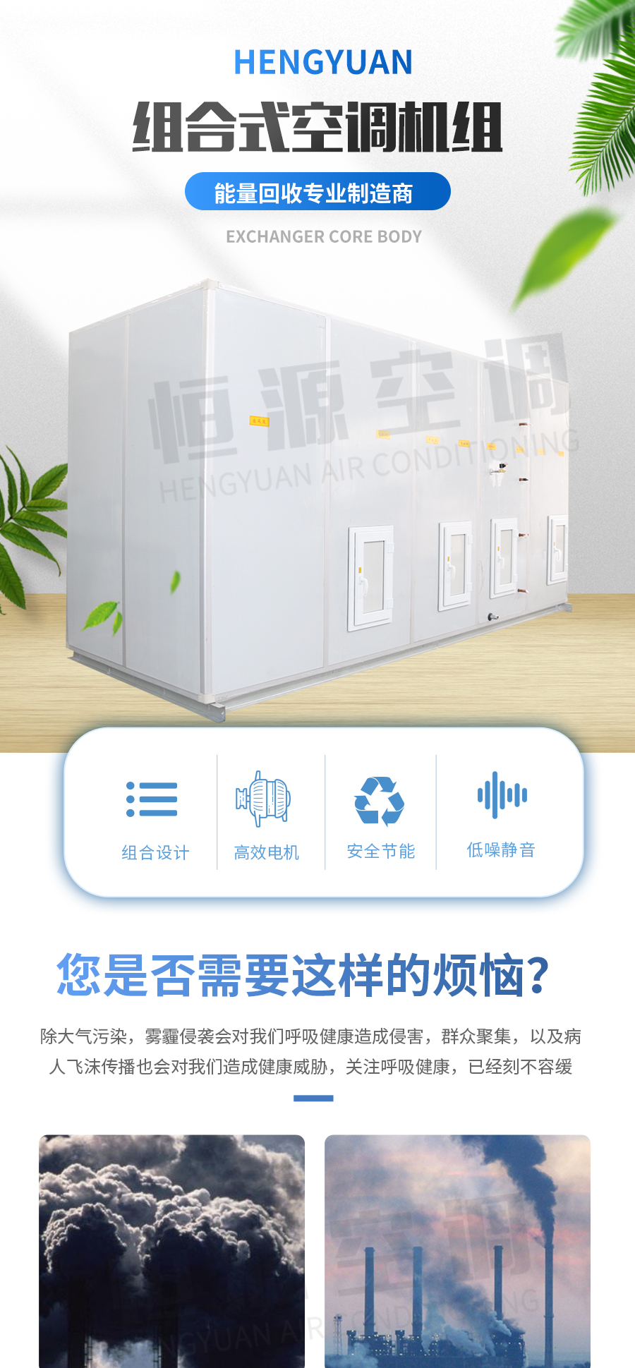 靖江市恒源空調(diào)設(shè)備制造有限公司——組合式空調(diào)機(jī)組是由各種空氣處理功能段組裝而成的一種空氣處理設(shè)備。適用于阻力大于100Pa的空調(diào)系統(tǒng)。 機(jī)組空氣處理功能段有空氣混合、均流、過濾、冷卻、一次和二次加熱、去濕、加濕、送風(fēng)機(jī)、回風(fēng)機(jī)、噴水、消聲、熱回收等單元體。